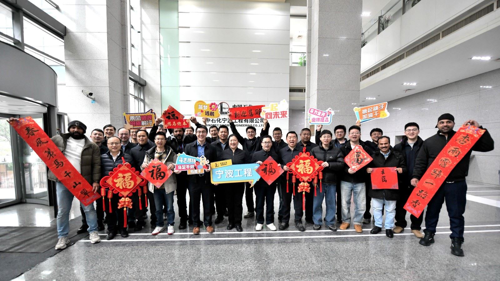 宁波工程公司沙特哈拉德油气分离EPC项目部中外员工齐聚一堂,以“笔墨迎春 福至万家”为主题开展迎新春活动。来自该项目配管设计、质量控制、试车管理等专业岗位的外籍员工,在中方同事的悉心指导下,手握毛笔、凝神聚力,一笔一划认真书写“福”字。一个个饱含吉祥寓意的“福”字跃然纸上,既承载着中国年的美好期许,也定格了中外员工并肩同行的友谊瞬间。